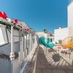Gli spazi esterni sono caratterizzati da due terrazze: la prima ideale per consumare un pasto o un drink, in estremo relax, con vista sui vicoli della città bianca; la seconda con una vista panoramica mozzafiato da dove si può ammirare la storica cittadina ed il tipico paesaggio naturalistico pugliese che si estende fino alle meravigliose coste del litorale ostunese.