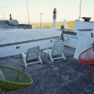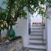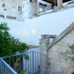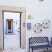 Intorno, il cortiletto mantiene la sua quiete: uno spazio condiviso ma mai invadente. Piccoli tavoli disseminati qua e là invitano a chiacchiere leggere o a gustare un caffè sotto il sole. E poi c’è la scala che conduce alla terrazza, un invito a meravigliarsi: da lassù, Ostuni si svela in tutta la sua luce, bianca e brillante, sospesa tra cielo e ulivi.