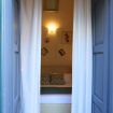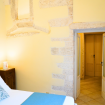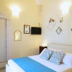 Nel camera da letto raccolta ed accogliente con un letto matrimoniale ampio e soffice, che sembra invitare al riposo, ogni elemento sembra avere una storia da raccontare; sulla destra, in un piccolo corridoio, c’è l’angolo cottura celato con eleganza, come un segreto appena svelato. È il posto ideale per preparare un caffè al risveglio e lasciarsi cullare dal silenzio antico del centro storico, che pulsa con discrezione oltre le mura.