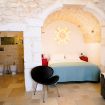 Appena varchi la soglia di Dimora Dolce Vista, un senso di calda accoglienza ti avvolge, come un abbraccio antico. Una scalinata di pietra, testimone di tempi passati, ti guida verso un soggiorno dove luce e tufo si fondono in un abbraccio di autenticità e calore. Qui, il passato e il presente si incontrano in un dialogo silenzioso, mentre arredi moderni si adagiano su un palcoscenico di pietra, creando un’atmosfera di intimità e magia.