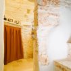 Il bagno, racchiuso tra pareti di pietra, è un rifugio di pace, un’oasi di quiete dove il tempo si ferma per ritrovare se stessi.
