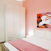 La camera da letto è un nido di relax, con un letto matrimoniale soffice e un armadio spazioso per tutte le tue esigenze. Il bagno, elegante e funzionale, offre un’ampia doccia e una lavatrice, garantendo il massimo comfort durante il tuo soggiorno.