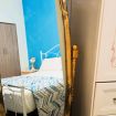 La camera da letto è un nido di relax, con un letto matrimoniale soffice e un armadio spazioso per tutte le tue esigenze. Il bagno, elegante e funzionale, offre un’ampia doccia e una lavatrice, garantendo il massimo comfort durante il tuo soggiorno.