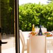 Sul retro, il patio ombreggiato accoglie i tuoi momenti più intimi: una colazione lenta, un bicchiere di vino al tramonto, o una doccia esterna sotto il cielo stellato, dove la semplicità si trasforma in lusso.