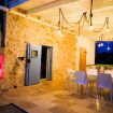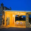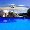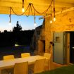Avvolto da un vasto terreno punteggiato di ulivi secolari, mandorli e alberi da frutto, il trullo emerge come un rifugio fuori dal mondo, con il suo giardino curato che accarezza l’occhio e l’anima. Tra il verde si apre, come una promessa d’estate, una piscina esterna sopraelevata, la cui superficie riflette il cielo come uno specchio liquido. Quando scende la sera, le luci calde e alte che la circondano creano un’atmosfera sospesa, quasi magica, in cui ogni tuffo diventa un rituale di pace.